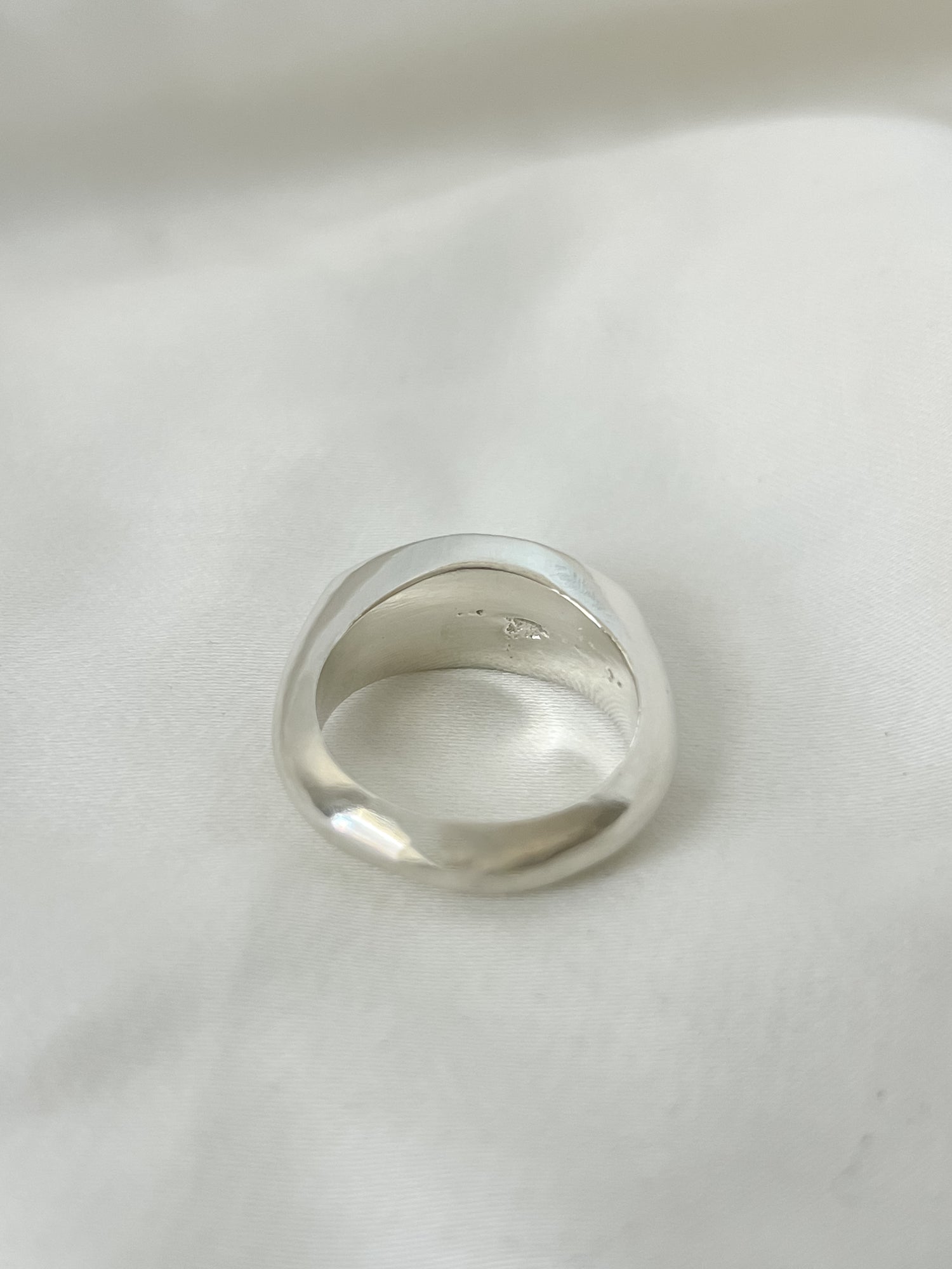 This ring also features raw inclusions such as indentations made from the clay and has a more organic shape- meaning it is not perfectly round. These are completely normal things that happen during the sand casting process and makes each and every ring even more unique!