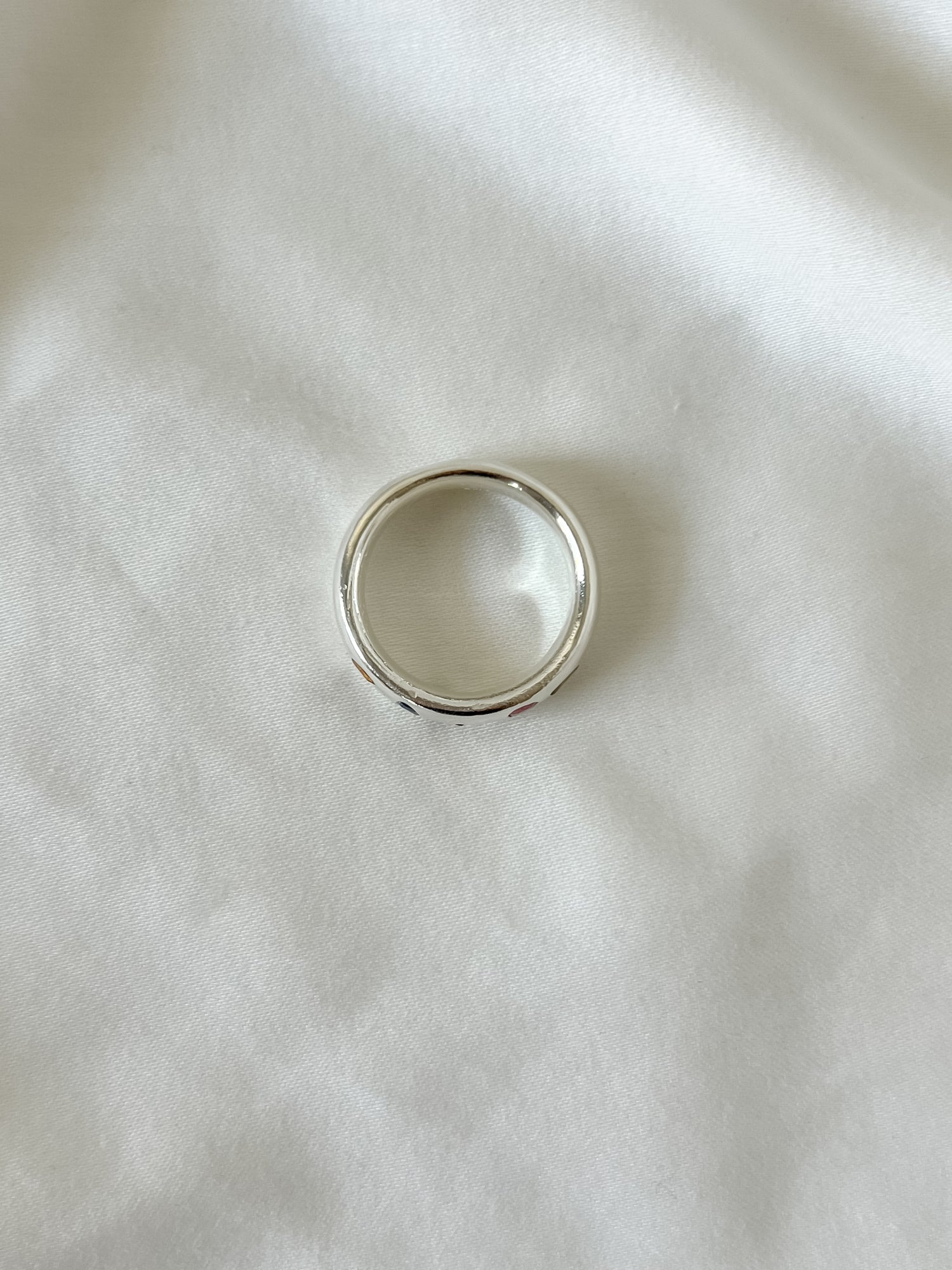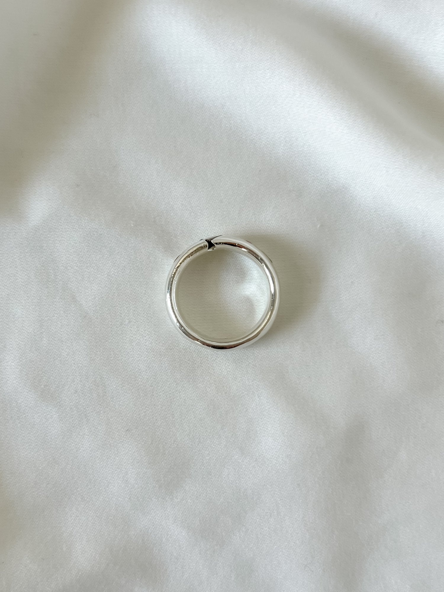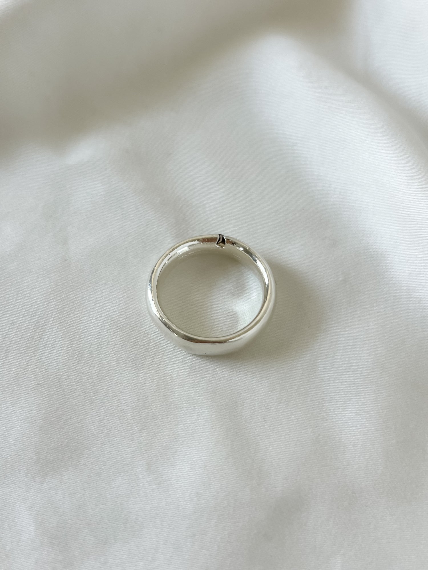This ring also features raw inclusions such as indentations made from the clay and has a more organic shape- meaning it is not perfectly round. These are completely normal things that happen during the sand casting process and makes each and every ring even more unique!