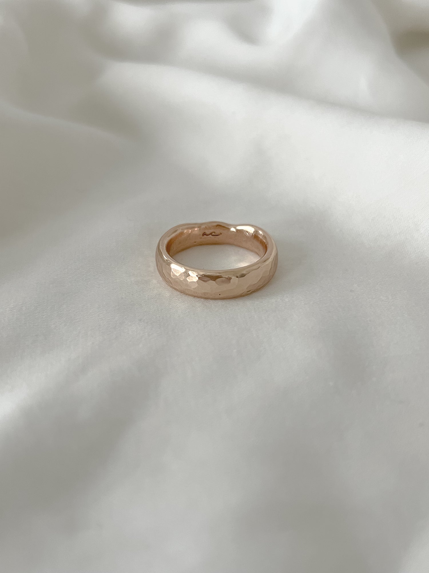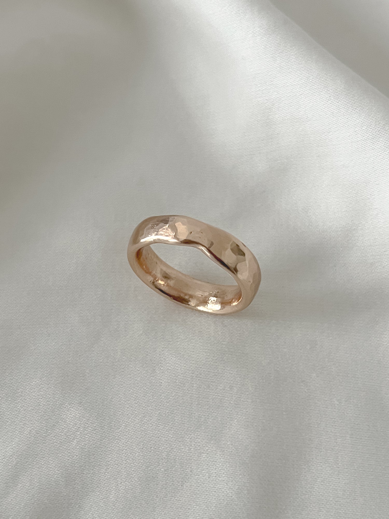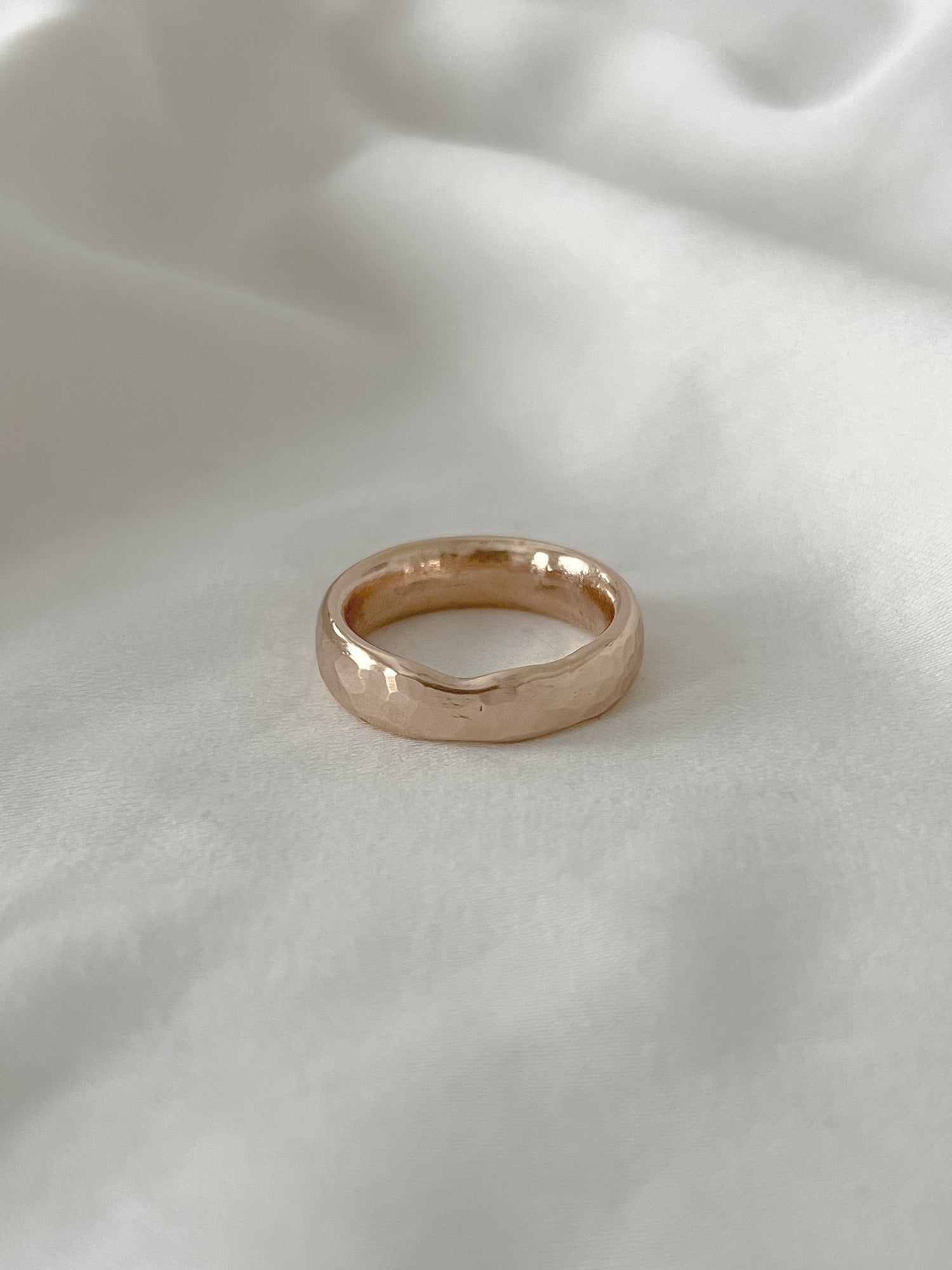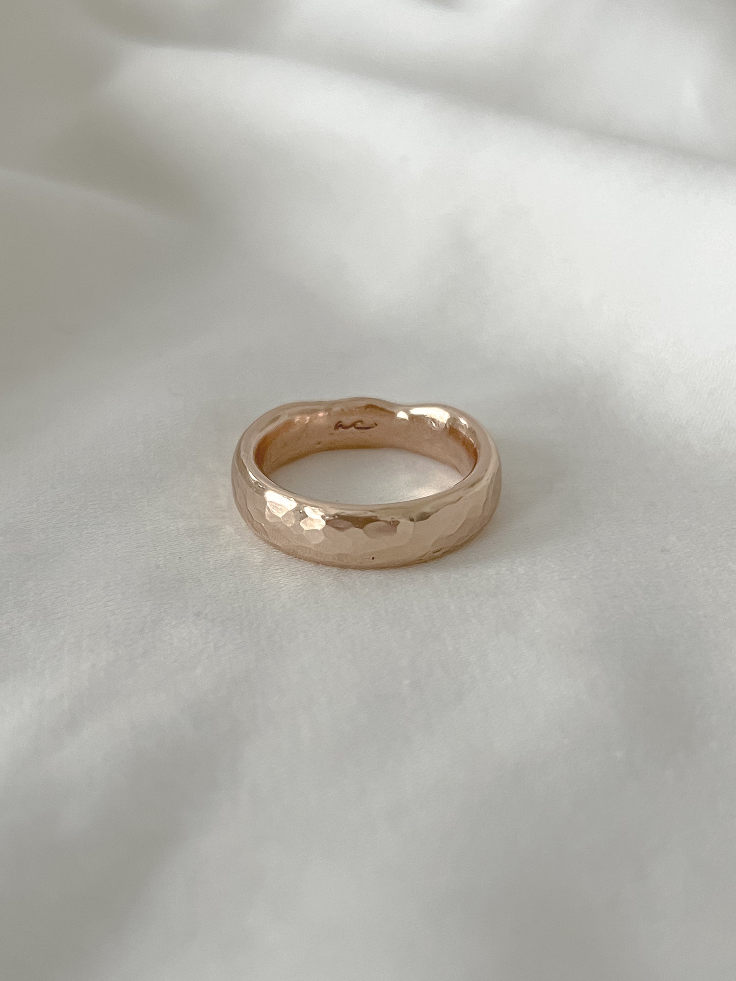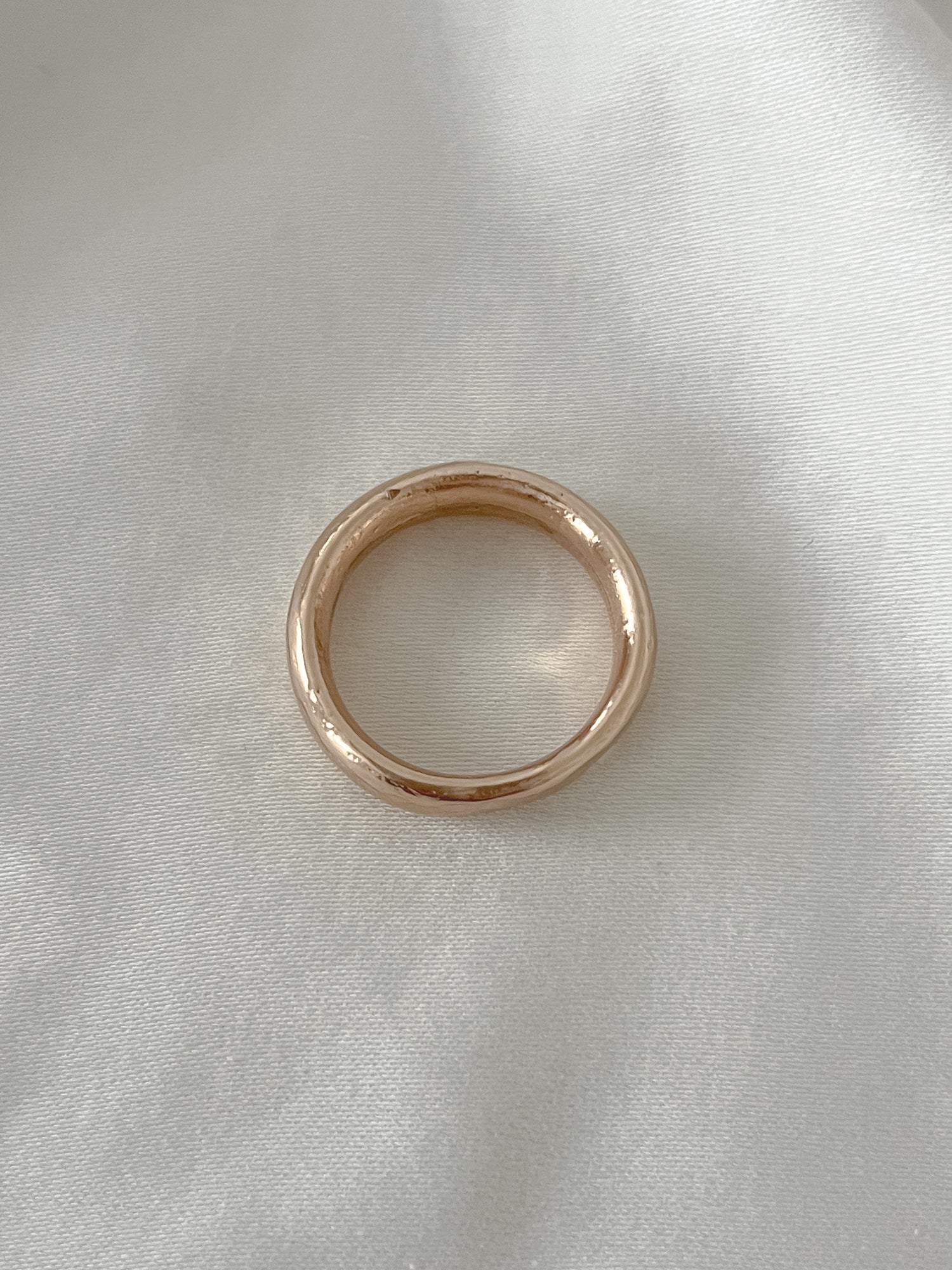 This ring also features raw inclusions such as indentations made from the clay and has a more organic shape- meaning it is not perfectly round. These are completely normal things that happen during the sand casting process and makes each and every ring even more unique!